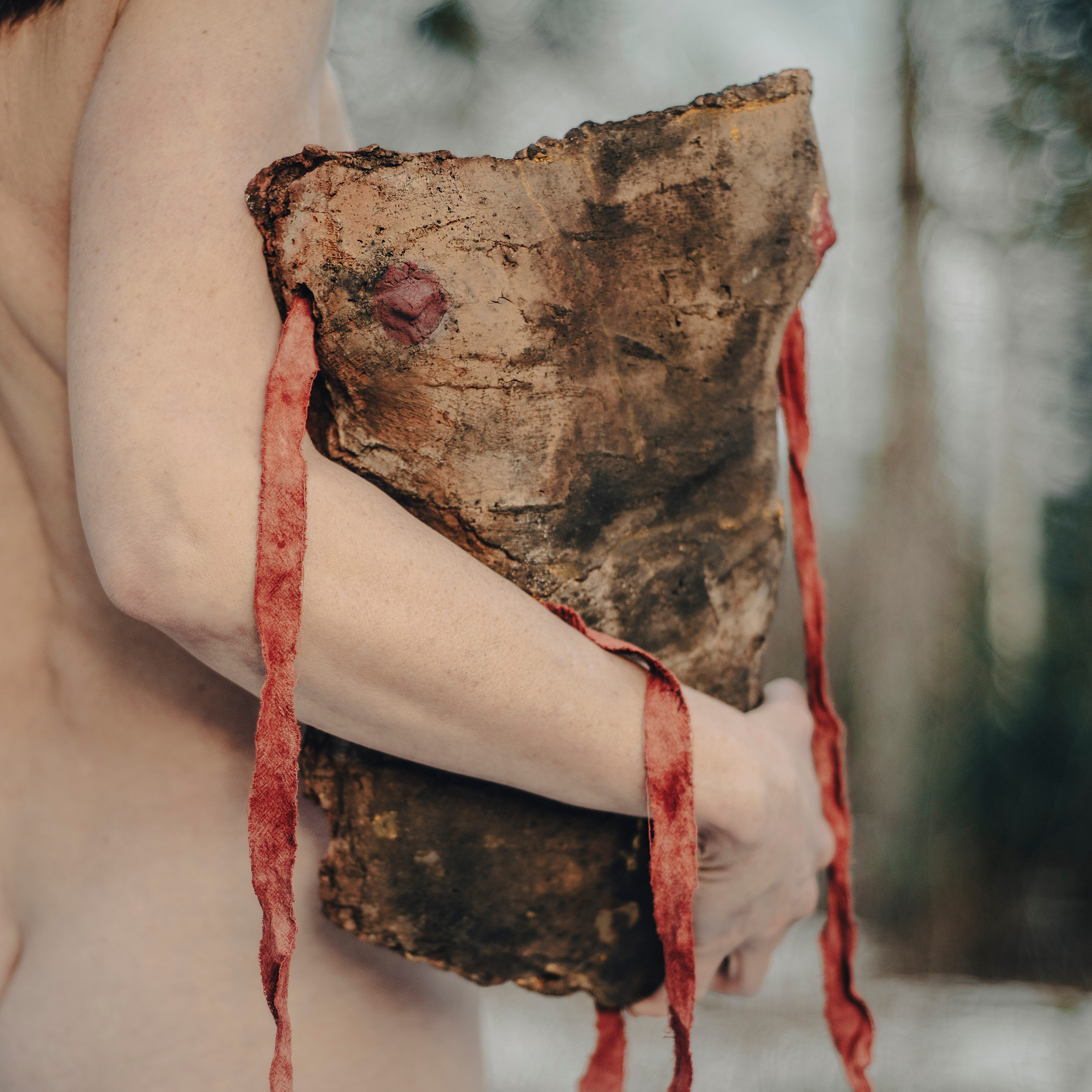 On a chilly evening when snow still covered much of the ground, we shot dozens of photos of me and the shield. Along the way, one of us got naked. The one with the camera had the good sense to keep on her winter coat and boots. Through it all, we talked about the long process that healing can take, about boundaries, about the reflexive and intuitive ways a body says stop. We talked about the redemptive power of creation, about the importance of community and collaboration. We laughed a lot, both at ourselves and the ways life can feel absurd.